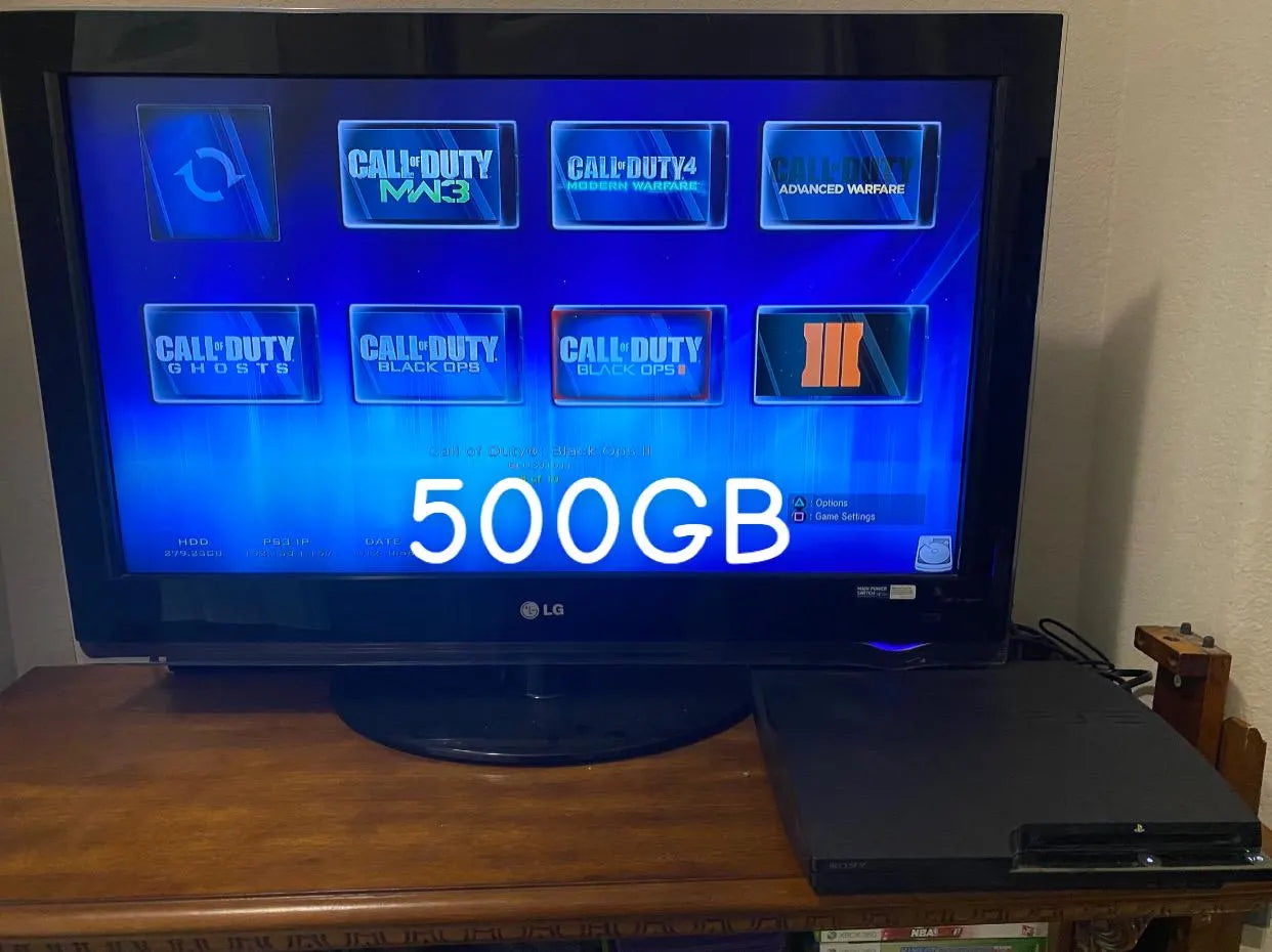 Modded Jailbroken PS3 Slim running either Custom Firmware (CFW) or HEN, 500GB Hard drive